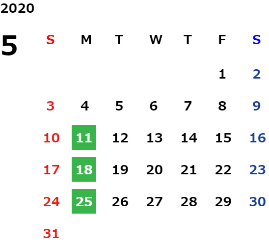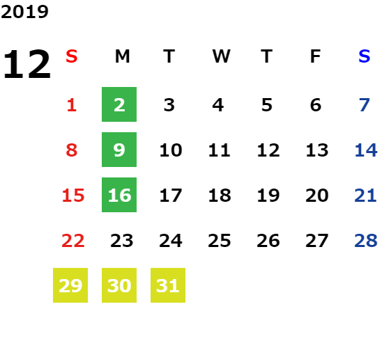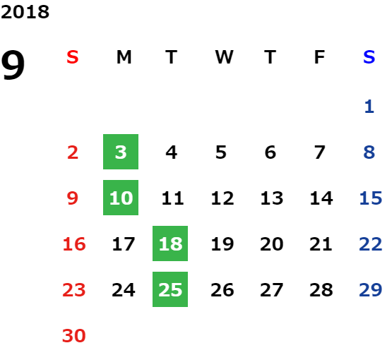 毎週月曜日