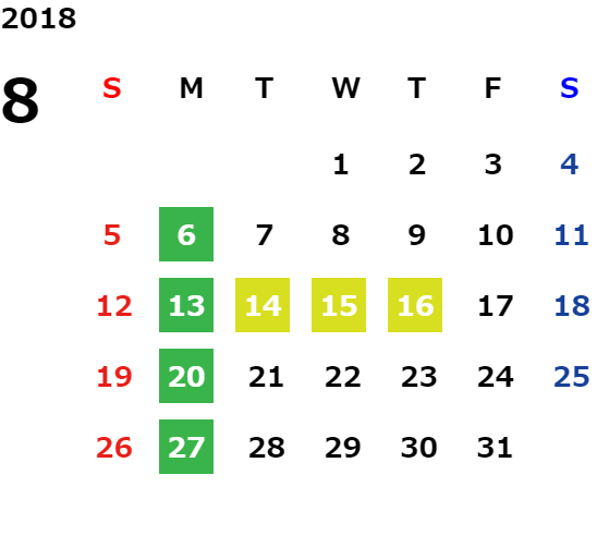 ※8月11日(月・祝)、18日(月)は営業日となります。