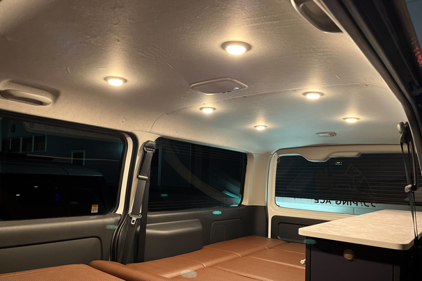やさしい色味のLED照明が、夜の車内をリラックス空間へと導きます。